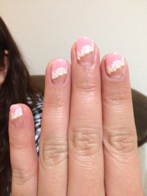 こんばんは 恵比寿 ネイル リバティです きょうはとってもかわいいレースネイルのご紹介です 10本レース&ストーンで、リッチ&ラブリーに仕上がりました