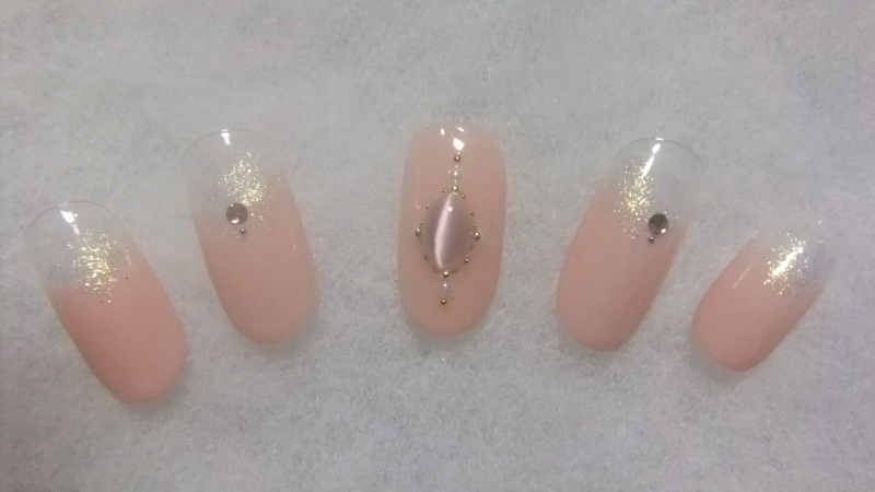 桜ネイル グラデーションに、ラメをかけて、ふんわりやさしい女子ネイル 8800円コース