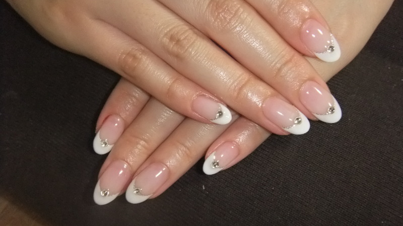 今回はシンプルな感じで・・・好きということで、白のTHEフレンチネイルです  ストーンを10個プラスしましたジュエル・yellow