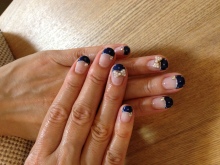そして、こちらは、おとなネイルのOさん ストーンも、グレー×ネイビーで秋モードです